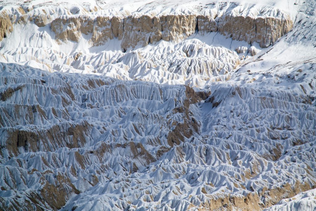 Na dnešní den stěží dospávám. Nejen, že jsou noci mrazivé, ale pravidelně mě budí nervozita i pozitivní vzrušení. Přejíždět autem v zimě z malého města do podstatně odlehlejšího údolí přes pětitisícové sedlo je pro mě něco zcela nového. Ráno vstávám, vylézám na terasu – dobrá zpráva, venku je polojasno. Pokud by chumelilo, může zůstat cesta do Nubry nesjízdná i několik dní. Krátce po osmé hodině vyjíždíme. Velká část cesty do průsmyku Khardung La je zasněžená. Několikrát zastavujeme na hezké výhledy a těsně před průsmykem dvakrát pomáháme tlačit menší auto před námi, které se ve sněhu nemůže rozjet. Jsme ve výšce přes 5 200 metrů nad mořem, venkovní teplota je něco pod -30 °C, do toho fouká, cesta klouže – obdivuju nápad se sem vydat s takovýmto autem.